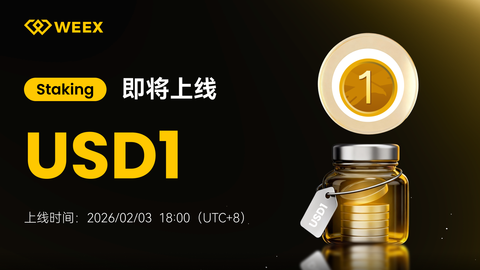 WEEX 将于 2026/02/03 18:00 UTC+8 正式上线 USD1 Staking,
